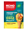 Крупа пшеничная кускус (не требующая варки), кусочки мяса птицы (куриное белое вареное) сублимационной сушки, паприка сушенаякусочки, соль, лук зеленый сушеный резаный.