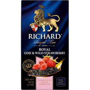 Чёрный байховый чай, гибискус, ароматизатор ягод годжи, кусочки земляники.