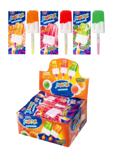 Состав: сахар, сироп глюкозы, лимонная кислота, пищевые ароматизаторы клубника, яблоко, голубика, лимон, пищевые красители Е129, Е133, Е102. Е110.