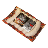 Филе куриное, свинина, животный белок, молочный белок, соль поваренная, вода питьевая, чеснок, экстракты специй, стабилизатор - пирофосфат натрия, регулятор кислотности - трифосфат калия, антиокислитель - лимонная кислота, фиксатор окраски - нитрит натрия, усилитель вкуса - глютамат натрия.