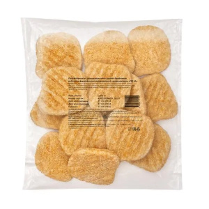 мясо куриное, вода, сухари панировочные (мука пшеничная, масло растительное (рапсовое), дрожжи, соль), фарш куриный, мука пшеничная, масло растительно (подсолнечное), крупа манная, крахмал (картофельный, пшеничный), глютен пшеничный, соль, декстроза, разрыхлители (Е450(i), Е500(ii), ароматизатор (жареная курица)