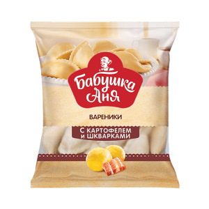 Начинка: картофель свежий вареный, свинина обжаренная, вода, лук жареный сушеный, соль йодированная, перец черный молотый, сахар.