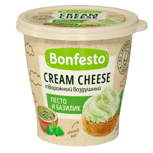 Кремчиз воздушный ТМ Bonfesto с наполнителем "Песто и базилик" можно использовать как самостоятельное блюдо для вкусного и полезного перекуса, в том числе и вне дома, а также для приготовления различных закусок, соусов, горячих блюд. Этот сливочно-творожный сыр прекрасно сочетается с пастой, лазаньей, крем-супом, пиццей, брускеттой, бейглом и др.