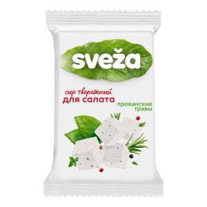 Творог, масло из коровьего молока, комплексная пищевая добавка (желатин; растительные волокна, стабилизатор - каррагинан), соль, смесь трав (тимьян, базилик, розмарин, чабер садовый, лаванда, усилитель вкуса и аромата - глутамат натрия 1-замещенный).